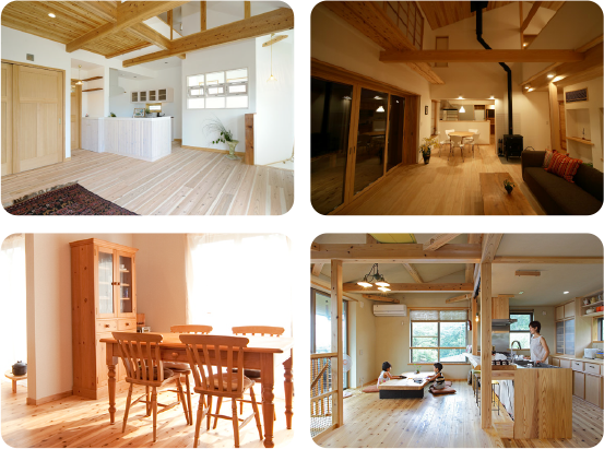 木は空気中の湿度調節に優れた建材です。じめっとした時は除湿をし、カラカラの時は加湿をし、心地よい空気に保ってくれます。また、有害物質なども吸着・分解するので、いつも気持ちの良い空気に包まれて過ごすことができます。