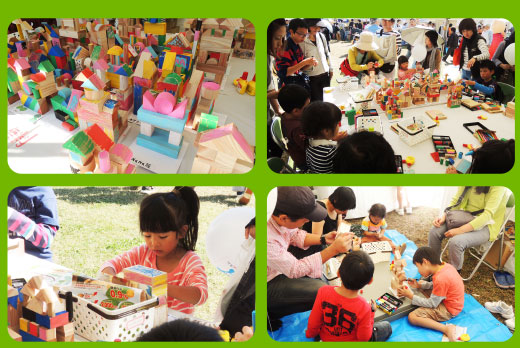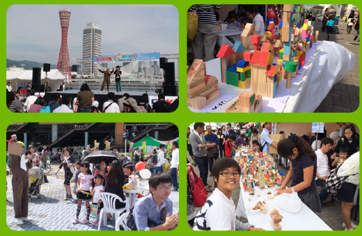 2014年10月12日を皮切りに約1カ月間、兵庫県内7カ所の施設でワークショップを行い、積木でつくった「ぼくたち・わたしたちの『夢の家』」を集めて、大きな「ひょうごのまち」を作ろうというプロジェクトを開催しました。予想を超える多くの方々にご参加いただき、400戸を超える「夢の家」が集いました。そして、11月29日・30日には「ハーバーランド・スペースシアター」において、立派な「王国」が完成。どの家にも個性があり、カッコイイもの、カワイイもの、面白いものなど、見ていて飽きない色とりどりの家々に加え、木でつくった兵庫の街のランドマークがそびえたつ、夢の王国が来場者の目を楽しませました。